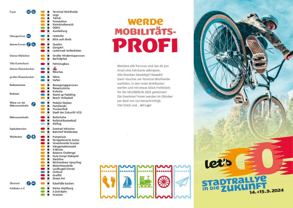 Um alles, was uns bewegt und die Freude daran geht es beim Familien-Event „Let’s go! Stadt-Rallye in die Zukunft“, das am 14. September 2024 Premiere hat. Das FEZ-Berlin stellt dafür im Stadtpark Wuhlheide eine lange Liste von Sportangeboten und Fahrzeugen zum Ein- und Umsteigen auf. Zum Beispiel kommen die ikonische Feldeisenbahn, eine Draisine, Kanus, Hoverboards, BMX, die Laufkugel und das Einrad, aber auch Lastenräder und der eigene Körper zum Einsatz.